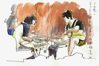 为了跑遍所有小巷的计划,我们必须避开复杂的夜里,在人潮车辆不多的时候进行。当我们发现十来个外地神女错落于某条巷弄时,确实有点惊讶。她们好像出现得太早,在许多人正赶着去上班时到这里干活。她们和巷口咖啡店里用餐饮酒的人们好像各不相干,却又似乎有些关联。因为饮酒吃茶的多为男生,而且不像是出门赶路的上班族。要不是之前的‘巧遇’,周遭就像任何老区的平静早晨,走街的走街,饮茶的饮茶。